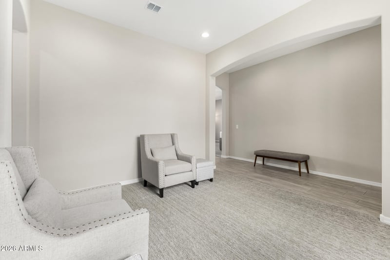 Listing details for 26972 Kerry Ln, Buckeye, AZ 85396 : Experience elevated desert living in this stunning 2023 Serenity model located in the highly desirable active adult community of Sun City Festival. Showcasing 2,316 sq ft, 3 bedrooms, 2 bathrooms, plus a versatile den, this exceptional residence offers over $160,000 in premium upgrades and is truly move-in ready with refined, turnkey convenience. From the moment you arrive, you're greeted by beautifully curated desert landscaping and a rare 3-car split garage, including an extended 2-car bay and a separate third stall--ideal for a golf cart or prized vehicle. Inside, the home exudes a light, airy elegance with soaring ceilings, a sophisticated neutral color palette, and a seamless blend of designer tile and plush, pillow-soft carpeting throughout. At the heart of the home, the gourmet Chef's kitchen is both functional and striking, featuring staggered grey cabinetry with crown moulding, gleaming granite countertops, stainless steel appliances, a built-in wall microwave & oven combination, chic pendant lighting, an expansive walk-in pantry, and a large center island with breakfast bar seating--perfect for casual dining or entertaining in style. The open-concept great room creates a warm yet refined space to gather, anchored by abundant natural light and thoughtful design. The luxurious primary suite serves as a private retreat, offering a spa-inspired ensuite with a large vanity with dual sinks, a large walk-in shower, a generous walk-in closet, and a serene ambiance designed for relaxation. Additional bedrooms and the flexible den provide ideal accommodations for guests, a home office, or hobby space. Step outside to your private, resort-style backyard, fully enclosed for privacy and enhanced with professional lighted landscaping and a covered patio, creating the perfect setting for quiet mornings or elegant evening entertaining under the Arizona sky. Offered fully furnished with upscale pieces, including electric reclining seating and an 85-inch living room TV, this home delivers effortless luxury from day one. All major appliances convey, including the refrigerator, washer, dryer, reverse osmosis system, and water softener. A 2025 Denago Rover XL golf cart is also available for separate purchase, adding to the lifestyle appeal. Residents of Sun City Festival enjoy an exceptional array of resort-style amenities, including championship golf, pickleball and tennis courts, a state-of-the-art fitness center, clubhouse, spa, media room, and miles of scenic walking and biking paths. This is a rare opportunity to own a beautifully upgraded, impeccably maintained, and fully furnished home that blends comfort, sophistication, and the very best of Arizona's active adult lifestyle.