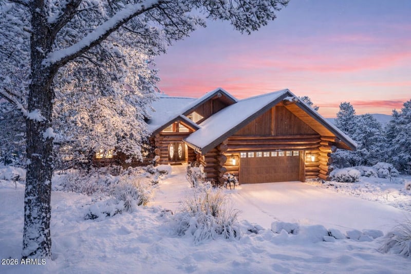 Listing details for 2706 Wild Rose Cir, Payson, AZ 85541 : Welcome to one of Payson's most remarkable mountain homes -- a masterfully designed log cabin estate situated along the 4th hole of the prestigious Chaparral Pines Golf Club. This exceptional property captures the essence of refined rustic living, where traditional craftsmanship meets elevated design, all set against the panoramic beauty of Arizona's Mogollon Rim. With its classic log cabin exterior, the home embraces the timeless appeal of mountain architecture while offering a fully upgraded interior curated for modern living. Inside, soaring 32-foot ceilings with exposed timber beams create a dramatic sense of space, while expansive windows frame breathtaking views of the manicured fairway and the surrounding high country landscape.