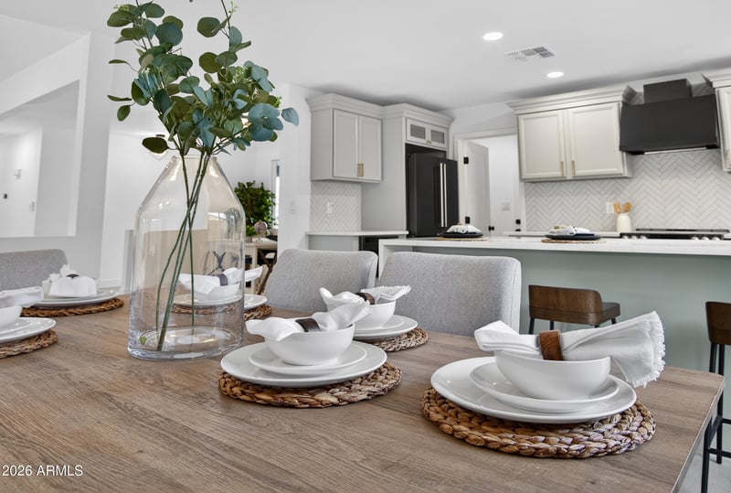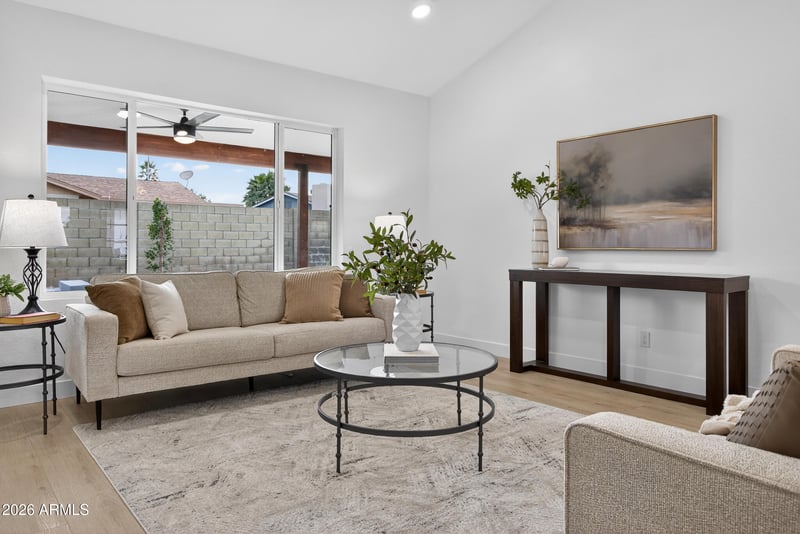 Listing details for 2717 Medina Ave, Mesa, AZ 85202 : Re-imagined architecture and refined modern touches create a timeless, elevated vibe. Welcome to this gorgeously updated 3-bedroom, 2-bath residence with a stunning, light-filled open-concept design. The kitchen declares a statement, featuring a sophisticated palette, designer herringbone backsplash, solid-surface waterfall countertops, GE Café appliances, soft-close custom cabinetry, a walk-in pantry, and a generous breakfast bar. Wood-style plank flooring flows seamlessly throughout. Step outside to a private, resort-style backyard with an extended covered patio, crystal-blue pool, new turf, fire pit, and ceiling fans. Location is everything, with easy access to dining, shopping, freeways, and the airport—set within one of Mesa's most sought-after master-planned golf communities.
