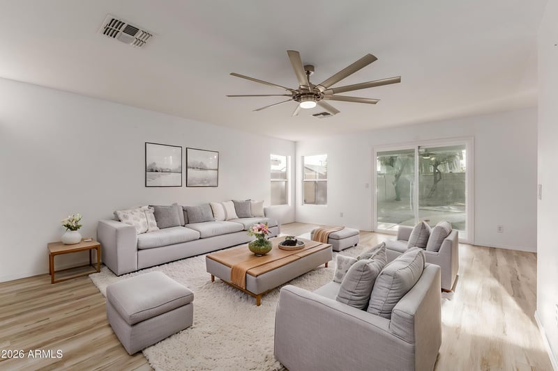 Listing details for 272 228th Ln, Buckeye, AZ 85326 : FANTASTIC CUL-DE-SAC LOCATION! This beautifully maintained 4-bed, 2-bath home sits in a highly desirable cul-de-sac & offers an airy, open layout w/ generous living space. The MAIN-FLOOR PRIMARY SUITE provides ideal comfort & privacy. The open-concept main level seamlessly connects the living, dining, & kitchen areas, featuring breakfast-bar seating & a window over the sink that fills the space w/ abundant natural light. Recent updates include LUXURY VINYL PLANK FLOORING (2024), NEW CARPET throughout (2024), & FRESH EXTERIOR PAINT (2025). Step outside to a versatile concrete pad that's perfect for outdoor seating, a spa, or your own creative touch. All kitchen appliances included, & thoughtful updates throughout, this home is truly move-in ready. Don't miss your chance to make it yours!