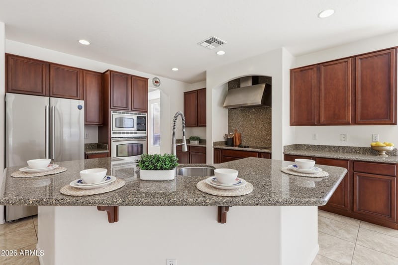 Listing details for 27220 65th Dr, Phoenix, AZ 85083 : Welcome to this beautiful home in North Phoenix, featuring a sparkling pool and owned solar near mountain preserves! The open-concept layout and spacious kitchen are perfect for living and entertaining, featuring granite countertops, rich wood cabinetry, stainless steel appliances, a large center island with seating, and built-in wall ovens. This floorplan offers generously sized bedrooms and the office of your dreams with custom built-in bookcases, desk, and storage. Step outside to your private backyard oasis, with a sparkling pool, putting green, covered patio, and low maintenance landscaping which provides the perfect setting for enjoying Arizona living year round. onveniently located near hiking trails, shopping, dining and major freeways, this one has it all!