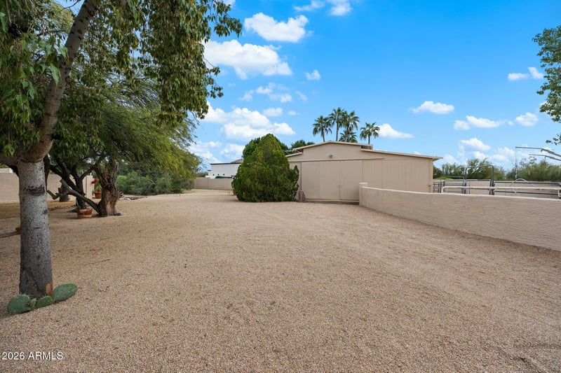 Listing details for 27224 71st Pl, Scottsdale, AZ 85266 : HORSE PROPERTY or Car Collector.. Outstanding opportunity. Select your lifestyle. Convenient North Scottsdale location-Secluded neighborhood of Custom homes on Acre lots. No HOA. Exceptional barn-3 large stalls & round pen. Second Garage-Approx. 60' long-10'garage doors - for Car Collection, RV & Toy Storage or Horse Trailers-Drive thru-lot has 2 Gates. Beautiful Home, Corner lot. Semi-Circle Drive leads to courtyard. Flexible floorplan-Tremendous Great Room with vaulted ceiling & dramatic fireplace-area joined by Sun Room with access to patio, Also-Loft/tower room-with panoramic mountain views. Backyard features pool, golfing amenity, & firepit. Ideal for entertaining. Spacious Office/Den w/private bath & large closet. New septic tank and new roof coating 10/2025. Furnishings available