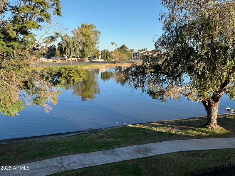 Listing details for 2724 Desert Cove Ave, Phoenix, AZ 85029 : 2 bed, 2 bath lake front, end unit townhome ready for the new owners to come in and make it your own. Large north facing back patio overlooks the lake where you can sit out in the mornings having coffee watching the ducks and enjoying the tranquility of the lake. Split master bedroom floor plan. Foyer, kitchen and breakfast nook currently has saltillo tile flooring. Kitchen has stainless steel appliances, pantry closet, breakfast bar and opens into the spacious great room with 10'+ ceilings, a wood burning fireplace and lake views. Honeysuckle vinyl plank flooring in both bathrooms and the laundry room was installed in March of 2024. Carpet in the great room and both bedrooms. Master bath currently has a single sink vanity and combo tub and shower unit. Guest bath has a stand-up shower and single sink vanity. 2 car carport right in front of the unit with a storage closet. HOA fee includes roof replacement and repair, exterior maintenance, water, sewer and trash. Community includes walking paths, community pool and heated spa. Walking distance to numerous restaurants, shopping, banks and the future home of The Village. Close to the bus stop just outside the complex and the I-17 freeway.