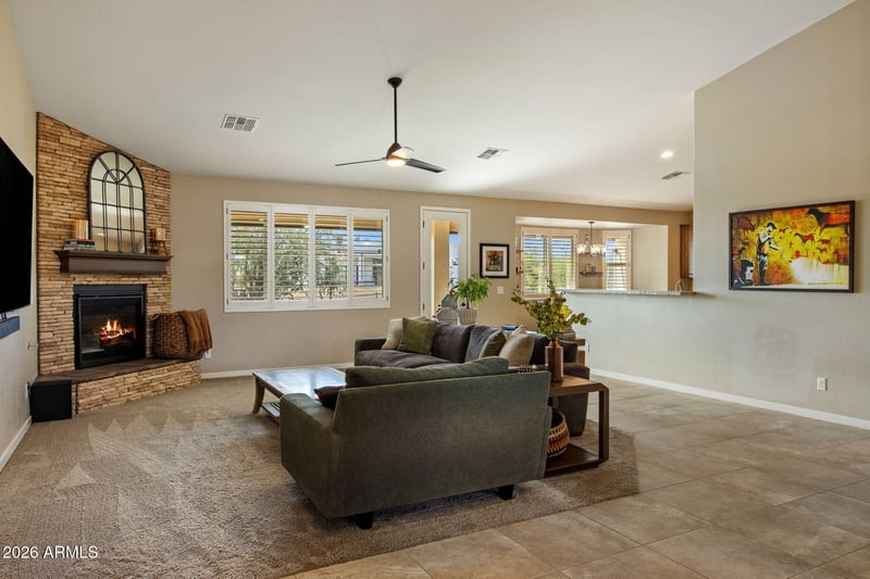 Listing details for 27412 170th St, Rio Verde, AZ 85263 : Built in 2021 by Diamante Homes, this well-maintained 4-bedroom, 2-bath residence offers 2,316 sq ft of thoughtfully designed living space on a full acre with beautiful mountain views. The open floor plan features vaulted ceilings, tile flooring in the main living areas, and carpeted bedrooms for comfort.