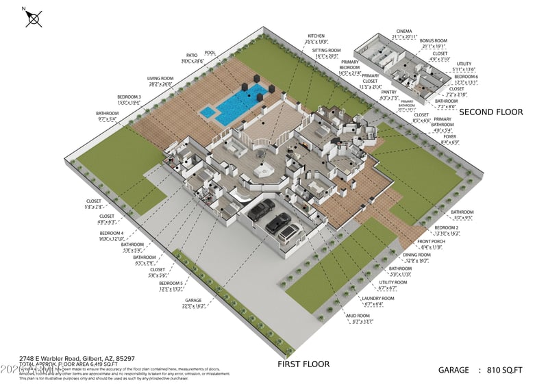 2748 Warbler Rd, Gilbert, AZ 85297 and is listed for sale at $3,200,000.00. This home was built in 2014, contains 6416 square feet of living space, and sits on a 0.5 acre lot. This residential home is priced at $498.75 per square foot.
