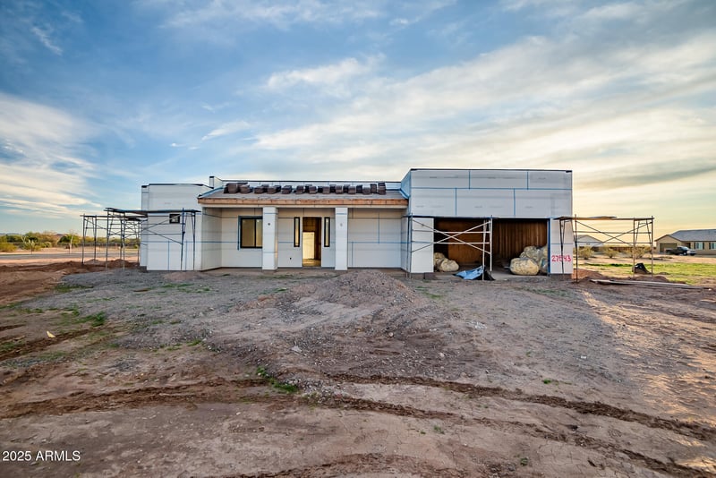 Listing details for 27543 255th Ln, Wittmann, AZ 85361 : Brand New home built to perfection! Home is open & bright w a touch of contemporary finishes & custom front door. Kitchen is fantastic w/ island breakfast bar covered in level 3 granite or quartz. 2x6 exterior wall construction, Andersen Windows, SIGA house wrap and tape system,spray foam insulation, & loaded w many more upgrades. Bedrooms are spacious w/ master having walk in closet & w huge walk in shower. Fantastic split floor plan w awesome mountain views to the north & south. Property is located around upscale site built custom homes w underground power, close to US 60 freeway access a 5 part shared well & No HOA! Others to choose from. HURRY! Bring you horses and your toys! Located in excellent area of Wittmann. Buyer can still choose interiors. Completion time 90 days