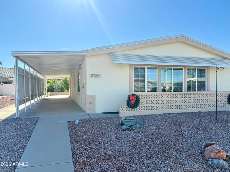 Listing details for 2756 Wright Way, Mesa, AZ 85215 : Immaculate professionally updated all electric home with open, bright floorplan. Absolutely move in ready! All dry walled thru-out with vaulted ceilings! Great room w/ 4 large front windows w/ pass thru to kitchen. Breakfast island in kitchen, Tons of cabinets with pull outs in some lower cabinets . Neutral counter, skylight, Refrig to stay! Two bathrooms remodeled to make both spacious! Stackable washer & dryer stays! Large master bedroom w/ vaulted ceiling, spacious closet and en suite bath. Large yard with lemon & orange tree. Newer hot water heater, roof replaced with metal in 2010, AC replaced 2024, & everything is so clean! Workshop off carport w/ lighting & backyard door too. 1988 built so FINANCING Available! HOA fees only $80 monthly ! Heated pool, spa, clubhouse and fitness center, billiard room, 6 lighted pickleball courts, art club, card clubs, bingo, huge wood shop, HOA fee includes garbage pick up twice a week, and many more clubs. plus dance events, potlucks and so much more all for $80 a month for a yearly total of only $960 (paid in full or $480 semi-annually) You can be as busy or as relaxed as you choose. We are a golf community, but golf is by separate membership. White Feather bar and grill restaurant is open to all! Come see what Apache Wells is like!