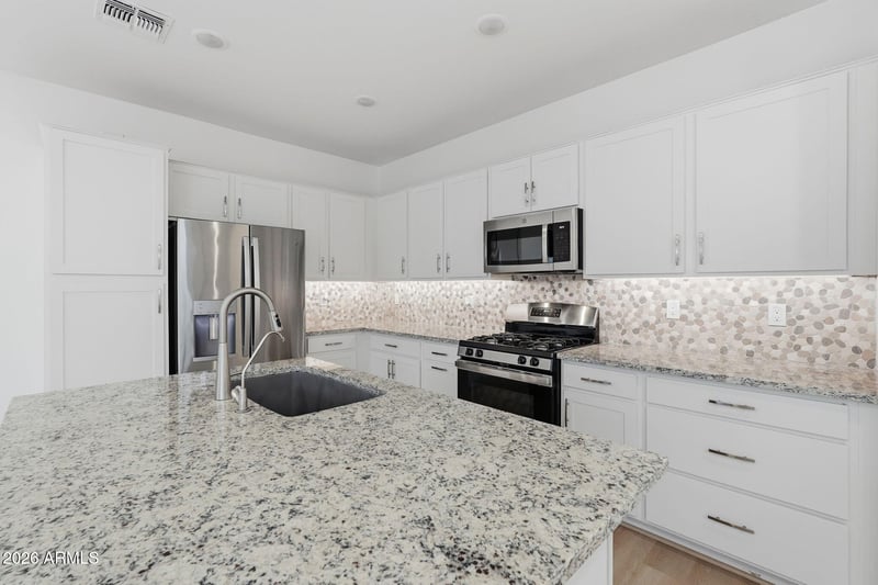 Listing details for 2781 Comanche Dr, Chandler, AZ 85286 : Beautiful 2bd/2.5bth home in the desirable gated Mariposa community of Chandler! The tall ceilings and natural light make this home pop! It's a must-see. Besides the two bedrooms, there is also an open area upstairs that could work as a den or office. Some of the features include LVP flooring throughout, recessed can lighting, plantation shutters, tankless water heater, water softener, security system, and new synthetic grass in the manicured backyard. The spacious kitchen features an island, gas stove, granite counters, R.O. system, s/s appliances, pantry, attractive backsplash and under-cabinet lighting. The washer, dryer and fridge all convey. The community features a pool, playground, green belt and a clubhouse. Come take a look!