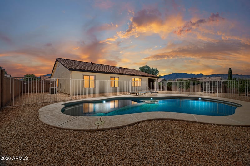 Listing details for 2803 Solarro Dr, Sierra Vista, AZ 85635 : Welcome home! This lovely 4BR 2B on a spacious corner lot has everything you need to enjoy comfortable living. The thoughtfully designed layout features a separate living room and den, with arched entryways that create a beautiful, natural flow throughout the home. The backyard showcases a pebble-tech pool, recently updated with a new pump with timer, plus an RV gate for added convenience. A variety of fruit trees, including apple, peach, plum, fig, & pomegranate, add charm & function to the outdoor space. The nearby park has a green playground and exercise path, while proximity to the golf course adds to the home's peaceful, retreat-like feel. Come see everything it has to offer today!