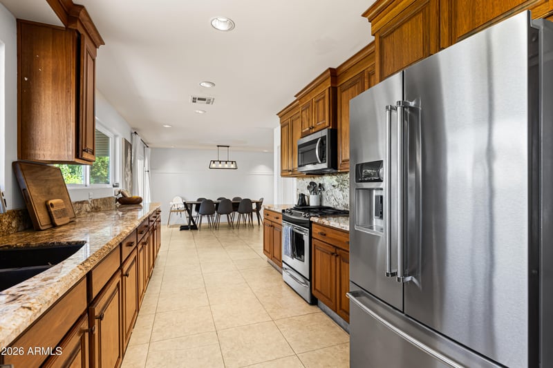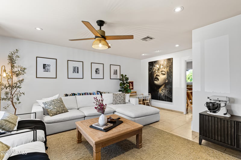 Listing details for 2814 Sierra St, Phoenix, AZ 85028 : Beautifully updated home in a prime North Phoenix location near Phoenix Mountain Preserve with NO HOA. Lush, mature landscaping & a charming covered front porch with custom redwood posts create a fantastic curb appeal. Extensive updates include smooth-textured walls, no popcorn ceilings, neutral tile flooring, and new LED lighting, custom ceiling fans, fixtures, & hardware throughout. The bright, open kitchen features custom solid wood cabinetry, soft-close drawers, slab granite counters, stainless appliances, gas cooking, and plenty of natural light. Major upgrades include newer HVAC, sewer line, roof, windows, garage door, interior doors, irrigation, W/ a 200-amp panel. Spacious primary suite with walk-in closet and updated bathrooms. Truly beautiful. Enjoy a huge, private backyard Plenty of fruit trees, grass, brick lined patio, firepit and views of the mountains. This is a wonderful home with a 2-car garage and solar system to cut down on your monthly electricity bills. This home is special and has the "it" feel.