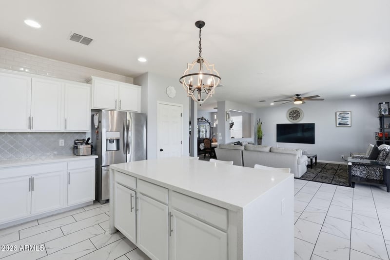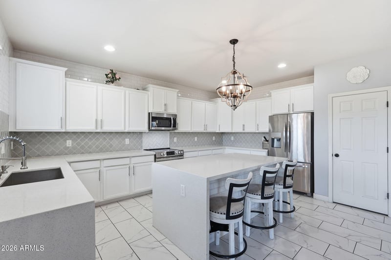 Listing details for 2825 103rd Dr, Tolleson, AZ 85353 : Welcome home to your modern and spacious home with one of the largest lots in the community! Built in 2020, the popular Grand model features an open concept floorplan with 4 bedrooms, 3 baths plus a loft! The beautiful kitchen has stainless steel appliances, quartz counters, and an island, plus upgraded cabinets and light fixtures. Neutral paint and finishes throughout. The property features a formal dining space that can be used flexibly. The extra large backyard is perfect for entertaining and making memories for a lifetime! It features grass with a watering system, perimeter landscaping, pavers in multiple locations for additional seating areas, a firepit, and covered patio. Easy access to hiking, outdoors, and all of the Southwest Valley shopping, dining, Spring Training, and more!