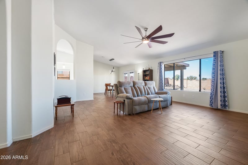 Listing details for 2831 Sierra Bermeja Dr, Sierra Vista, AZ 85650 : One of the best remodels we've seen! Every inch of this home has been beautifully remodeled w/ impeccable craftsmanship & designer finishes. No HOA, located in a highly coveted neighborhood w/ stunning mountain views. Brand-new AC, wood & tile flooring, custom cabinetry, quartz countertops, upscale fixtures & door hardware, new interior and exterior paint, natural gas tankless water heater, all thoughtfully selected for a modern, cohesive look. The open-concept floor plan showcases a showstopping chef's kitchen w/ abundant counter space, formal dining, & an expansive great room. Luxurious primary suite w/ bay window, soaking tub, & separate shower. Private backyard retreat w/ fire pit, storage shed, block wall, & serene nature views. This is model-home perfection, & it's move-in ready