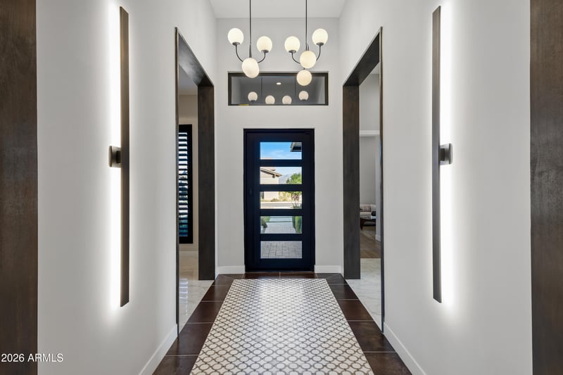 Listing details for 28412 Summit Springs Rd, Rio Verde, AZ 85263 : A Desert Modern Masterpiece awaits in the remarkable 24-hour guard-gated community of Trilogy at Verde River. This Toll Brothers home was designed as both a retreat and a statement, offering over $900,000 in curated upgrades and intentional design. A striking entry welcomes you into a soaring foyer crowned by a 14-foot ceiling. Every finish has been intentionally crafted to create an atmosphere of calm sophistication. The great room serves as the heart of the home, framed by 14-foot ceilings and expansive sliding glass doors that seamlessly connect indoor living to the serene desert backdrop. The open-concept design flows into a chef's kitchen anchored by a dramatic granite waterfall island. A professional-grade appliance suite from Sub-Zero and Wolf includes dual dishwashers, while a built-in coffee bar, wine refrigeration, and a butler's pantry elevate both everyday living and large-scale gatherings. For more intimate settings, a dedicated bonus room with a built-in bar offers the perfect atmosphere for evening cocktails and conversation.