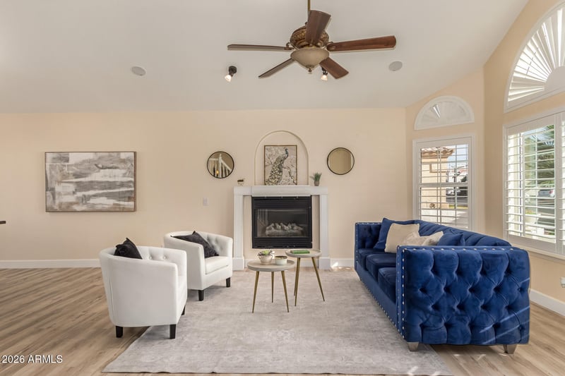 Listing details for 2842 Fox St, Mesa, AZ 85213 : BEST VALUE IN THE NEIGHBORHOOD! Recently reduced $20,000 and SELLER WILL PROVIDE up to a $15,000 concession toward buyer's interest rate buy-down or closing costs with acceptable offer! BEAUTIFULLY REFRESHED 4-bedroom home with LARGE LOFT and extensive NEW upgrades: WOOD-like flooring, Plantation Shutters, Granite Counters, NEW AC units, and PREMIUM synthetic turf front and back. Soaring ceilings, bay window, and fireplace create a warm welcome. Ideal floorplan includes a sought-after DOWNSTAIRS BEDROOM with private ensuite bath. Spacious family room with indoor-outdoor flow. Oversized owner's suite with dual sinks. Price improved + seller credit = unmatched value. Move fast. With Separate Tub & Shower! Spend peaceful afternoons in the enchanting backyard, which includes a full-length covered patio, a storage shed, and pristine artificial turf, and beautiful Citrus Trees. Make this gem yours today!