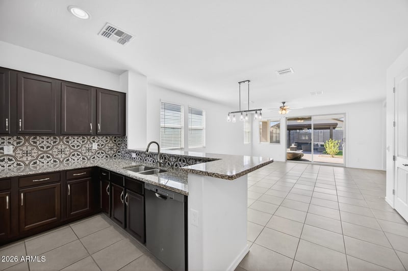 Listing details for 2845 Fain Dr, San Tan Valley, AZ 85144 : Beautifully maintained 3 bed, 2 bath home in the highly desirable Promenade community by Fulton Homes in San Tan Valley. Built just 4 years ago, this home features a spacious open floor plan with split bedrooms for added privacy. The kitchen flows seamlessly into the main living area which is perfect for entertaining. The primary suite offers double sinks and a large walk-in shower with ample space to unwind. Step outside to a covered patio and fully landscaped backyard complete with a built-in pergola. This backyard is perfect for relaxing or hosting! Located in a charming neighborhood with walking paths, multiple playgrounds, a resort-style community pool, pickleball and basketball courts, cornhole, and outdoor grilling areas. This move-in ready home shows the pride of ownership through