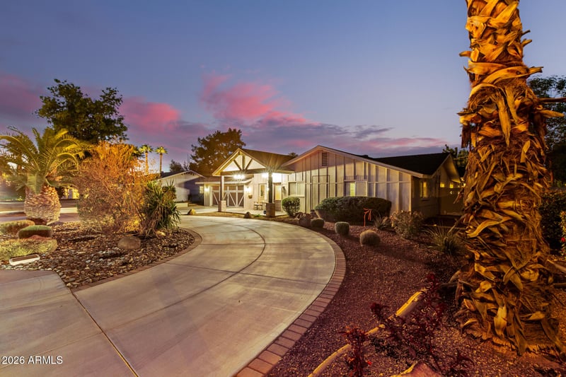 Listing details for 2846 Campbell Ave, Phoenix, AZ 85016 : Brilliantly remodeled 1959 home in the heart of Phoenix's Arcadia area, set on a large irrigated lot with lush greenery, raised garden beds, and mountain views. From the welcoming front yard, step inside to beautiful wood floors and an open, inviting layout featuring an entertainer's dream kitchen—thoughtfully updated with no detail overlooked. The kitchen overlooks an expansive backyard with play area, hobby shed, and space to add a pool. Outdoor living shines with updated pavers, outdoor kitchen and a fireplace. The primary suite offers a spa-like bath with jetted tub, plus a second primary bedroom for flexible living. Close to shopping, dining, and popular schools, this home blends character, comfort, and lifestyle.