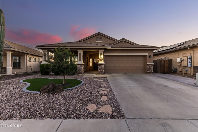 Listing details for 28526 26th Dr, Phoenix, AZ 85085 : Beautifully appointed single-story home offering effortless indoor-outdoor living. The open-concept design showcases a spacious great room, upgraded tile flooring, and soft natural light throughout. The kitchen features crisp white cabinetry, stainless steel appliances, and an oversized island ideal for gathering and entertaining. The primary suite is a private retreat with dual vanities and a walk-in closet. Thoughtfully sized secondary bedrooms provide versatility for guests or a home office. Step outside to a serene backyard with a covered patio, sparkling pool, and low-maintenance turf; perfect for enjoying Arizona evenings in style. Assumable loan available!