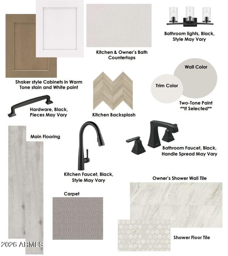Listing details for 2857 Picual Ave, San Tan Valley, AZ 85140 : BRAND NEW single level home w/4 beds, 3.5 baths, a dedicated study, sunroom and 3-car garage; chef's kitchen with tons of storage including dining cabinets, warm lower cabinets with white stacked uppers including glass fronts at ceiling; huge island with granite tops and herringbone tile backsplash; GE Cafe stainless appliances including gas cooktop; 10' ceilings, 8' doors, huge energy efficient windows and added 12' sliding glass door at family room opening to extended outdoor living area; gorgeous spa-like owner's bath with tiled tub deck, two sinks, and floor to ceiling tiled shower with added rain can showerhead; upgraded plank tile, carpet/pad throughout; 2x6 CONSTRUCTION AND EXTENSIVE NEW HOME WARRANTY.