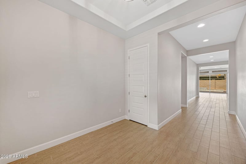 Listing details for 2860 Pinto Dr, Gilbert, AZ 85296 : Now vacant and easy to show!! Thoughtfully crafted single-level residence located in the highly coveted Warner Groves neighborhood within Morrison Ranch in Gilbert. This well-appointed home offers 3 bedrooms with option for 4th bedroom, 2.5 baths, and two versatile flex spaces ideal for a private office, media room, play room or fitness studio. The chef-inspired kitchen blends style and function, featuring upgraded stainless steel appliances with a built-in oven and microwave, gas range, white linen maple cabinetry, granite countertops, tiled backsplash, an expansive island, butler's prep area, and a generously sized walk-in pantry. Designed for both everyday comfort and effortless entertaining, the home showcases 8-foot doors, a desirable split floor plan, and a dramatic multi-slider with remote-controlled electric shades that creates a seamless indoor-outdoor living experience. The resort-style backyard offers exceptional privacy and is highlighted by a covered patio, heated pool and spa with Baja step, travertine decking, artificial turf, a built-in gas BBQ, and no two-story homes behind. Additional features include a paver driveway, walkway, and front porch, upgraded designer lighting, tile shower surrounds in the primary bath, and a premium north/south-facing lotdelivering refined living in one of Gilbert's most sought-after communities.