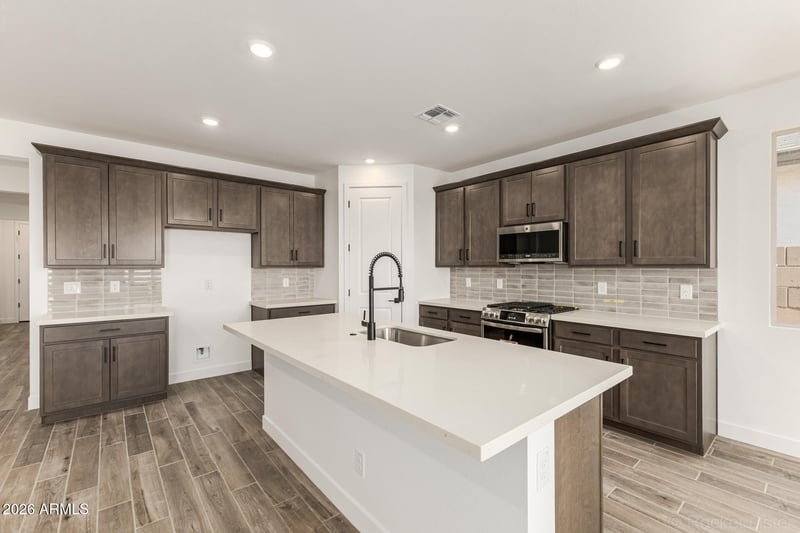 Listing details for 2873 Mecklenburg Way, San Tan Valley, AZ 85143 : Brand-new 4 bed, 2.5 bath home in Bella Vista Farms! Open-concept design with 8' doors, 42'' burlap cabinets, white quartz countertops and a beautiful kitchen backsplash. Features include upgraded finishes, wood look tile with upgraded carpet in bedrooms. Enjoy community amenities--pool, splash park, playgrounds, basketball, volleyball & soccer--plus a convenient location near San Tan Mountain Park, Queen Creek Marketplace & schools.
