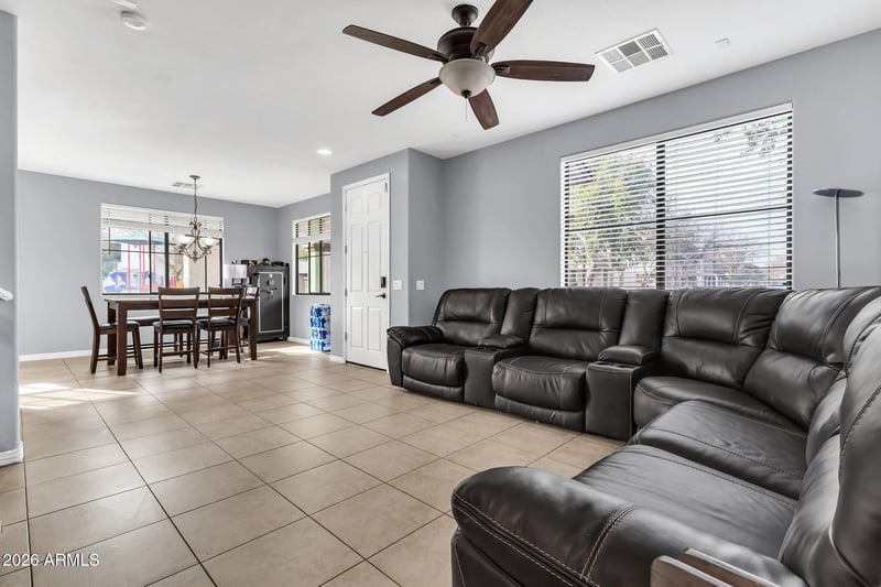 Listing details for 2879 Key Biscayne Dr, Gilbert, AZ 85295 : Stunning 3-bedroom, 2.5-bath home featuring a charming covered front porch overlooking the community park and playground. Interior boasts tile and laminate flooring throughout, no carpet creating a clean, modern feel. Tall ceilings, abundant windows, with natural light and a warm, inviting ambiance. The spacious primary suite offers a walk-in closet, and upstairs laundry and large loft add value & convenience. This Richmond American home is ideally located on one of the best lots in Spectrum at Val Vista, positioned along the greenbelt with easy access to the community pool and spa. Close to San Tan Mall and fine dining. Enjoy a prime location close to the Loop 202, shopping, restaurants, schools, bus lines, movie theaters, SanTan Village Mall, Costco, and more. This home perfectly blends comfort, style, and convenience, an opportunity you won't want to miss!