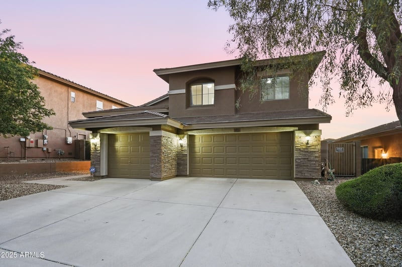 Listing details for 29024 70th Ave, Peoria, AZ 85383 : HELLO BEAUTIFUL! This stunning home offers soaring ceilings, natural light, and a spacious open layout. The gourmet kitchen includes a gas cooktop, granite counters, walk-in pantry, and custom backsplash. Major 2025 upgrades include NEW AC AND ROOF, flooring, plus 2024 water heater and water softener. The first-floor primary suite features a huge walk-in closet, dual vanities, soaking tub, and separate shower. Upstairs has 3 bedrooms (2 with walk-ins) and a den. The backyard is perfect for entertaining with a built-in BBQ, fire pit, water feature, fruit trees, and raised garden. Paid-off solar keeps electric bills around $35/month. Updated paint, 3-car garage, storage, and close to trails!