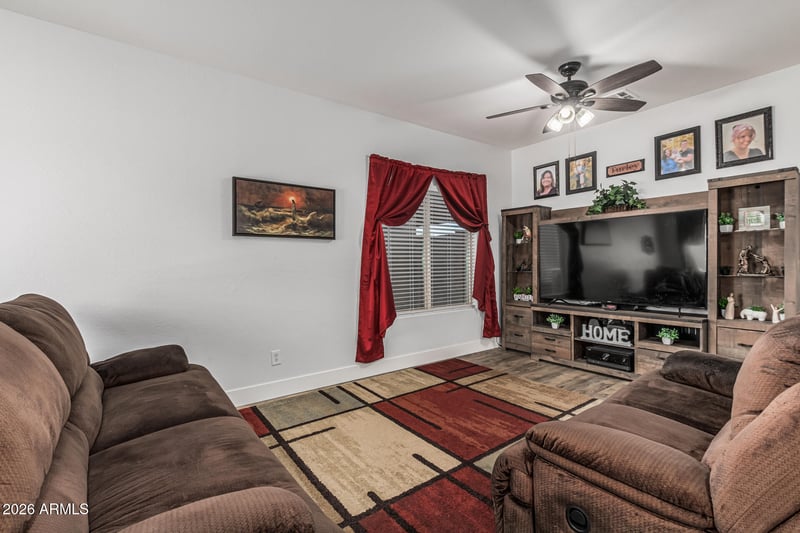 Listing details for 29132 Cactus Cir, San Tan Valley, AZ 85143 : Welcome to your low-maintenance, high-comfort hideaway in Johnson Ranch! This 4-bedroom, 2-bathroom stunner has been babied: flooring, carpet, appliances, and AC all upgraded about 2.5 years ago. Two living areas give you room to host or hide, and the kitchen's got storage for days (plus surprise shelves in the laundry room. Check it out!). Split floorplan with a luxe owner's suite and a Jack & Jill setup for the 3 guests rooms. Out back, you ask? A fully covered extended paver patio, great for grillin' or chillin'. A patch of green turf & a fire pit area for s'mores & stories! Your new home is placed almost at the end of a wide-open viewed cul-de-sac perfect for sunrise views!. Johnson Ranch is full of resort-style amenities! Zero drama. Just keys and coffee.