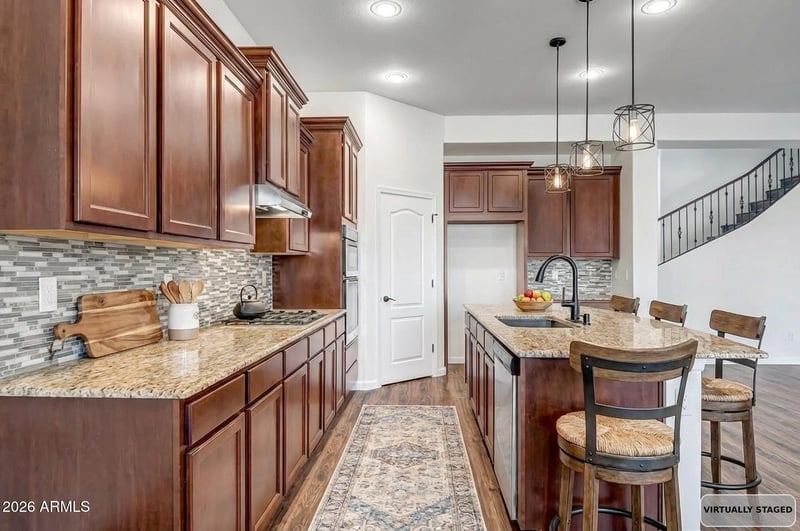 Listing details for 29247 70th Ave, Peoria, AZ 85383 : ENJOY A LENDER PAID 1% RATE BUYDOWN ON THIS HOME TODAY! Your Dream Home is Waiting in Sonoran Mountain Ranch—And It's HUGE! 🏔️ Looking for space? Like, REAL space? This 5-bedroom 2013 stunner in Sonoran Mountain Ranch delivers a floor plan so flexible it works for literally any lifestyle—growing families, multi-generational living, work-from-home setups, or just people who like having room to breathe. Walk into soaring vaulted ceilings, elegant plantation shutters, and gorgeous new wood-look laminate flooring flowing throughout. Fresh paint inside and out gives everything that crisp, move-in-ready feel. And here's the best part: the primary suite is on the FIRST LEVEL. Your private retreat with custom closets awaits downstairs with no stairs to deal with at the end of a l inside the secluded foothills with stunning mountain views and a North/South orientation that maximizes natural light, this home captures everything magical about Arizona living. The layout? Absolutely brilliant. Whether you need space for kids, guests, home offices, creative studios, or just want breathing room between everyone, this floor plan handles it all without feeling like a maze. And did we mention nearly $120K in upgrades? This isn't builder-grade basicthis is thoughtfully designed, beautifully upgraded, and ready for YOU. Sonoran Mountain Ranch living means hiking trails practically at your doorstep, top-rated Deer Valley schools, close proximity to the new TSMC facility, and that peaceful foothill setting that makes you forget you're minutes from everything. This one checks all the boxes: massive flexible floor plan, main-level primary suite, mountain views, upgraded finishes, unbeatable location.
