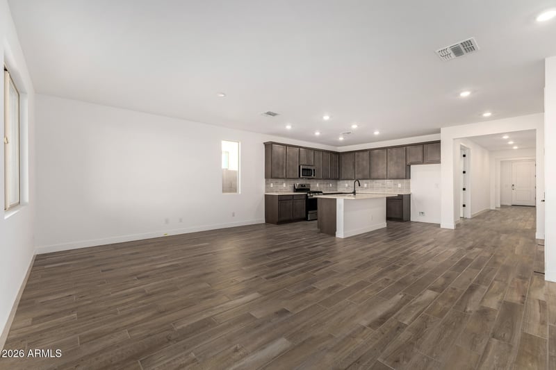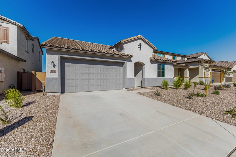 Listing details for 2928 Mecklenburg Way, San Tan Valley, AZ 85143 : New construction home this home features upgrades in all the right places! Popular, split floor plan with an en suite, featuring 8' interior doors, impressive entry/foyer giving you the grand entrance you've been looking for! The flex room is great for an office/formal dining/game room with double doors at the entry! Open concept, ideal for family and entertaining. The kitchen is a chef's dream, complete with 42'' cabinets, black hardware, stylish backsplash, beautiful quartz countertops, stainless steel appliances with gas range. A large kitchen island with breakfast bar, huge walk-in pantry! Smart Home features, 8' garage door, garage service door, 2.5 car garage with extra storage. 6x36 tile throughout with carpet in only bedrooms and closets! Upgraded tile shower in primary, and more!
