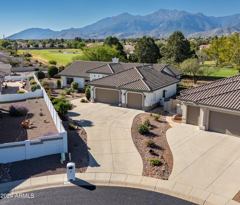Listing details for 2930 Glenview Dr, Sierra Vista, AZ 85650 : Customized Golf Course Property on 12th Fairway w/amazing Mountain Views on cul-de-sac in Winterhaven 55+ Community!!! Magnificent 3068SF, Open Concept Living w/Full-Length Outdoor Patio & Views, 2x6 Construction/10-foot ceilings, Quartz & Stainless Gourmet Kitchen w/upgraded Cabinets/Appliances, Food Warmer, Pot Filler, Porcelain Sink, Under-Cabinet Lighting...Built-in Marble-top China Cabinet...Bay Window w/Window Seat/storage overlooking Golf Course...Eat-In Area, Formal Dining, Gas-Log/Stone FP w/Granite Hearth...Amazing MBR Suite w/Luxury Bath/HUGE Walk-in...Cozy 2nd Bedroom & Ensuite, 3rd BR is Dual Office w/Built-in Desks...HUGE Laundry Room...Custom & Stunning Tilework/accents throughout...Oversized/Deep 3-Car Garage...Plus, H&C BONUS Room!!! THIS IS A MUST-SEE PROPERTY!!!