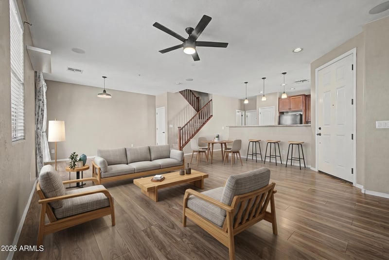Listing details for 2954 Donner Dr, Phoenix, AZ 85042 : Discover this inviting two-story townhome in the desirable Hunter Ridge community! This bright and welcoming home features an open, functional layout ideal for everyday living and effortless entertaining. Warm wood-look flooring flows throughout the main level, complemented by abundant natural light and a clean, soothing color palette that feels instantly relaxing. The well-designed kitchen offers ample cabinetry, a stylish mosaic backsplash, generous counter space, and built-in appliances -- perfect for preparing daily meals or hosting friends. Upstairs, the spacious primary suite provides a peaceful retreat with its own full bathroom featuring double sinks for added convenience. Two additional bedrooms and a full bath offer plenty of room for family, guests, or a home office. Step outside to enjoy your private backyard, complete with a paved patio -- the ideal spot for weekend barbecues and relaxing evenings. As a resident of Hunter Ridge, you'll also have access to fantastic community amenities, including a sparkling pool, spa, children's playground, and more! Ready to make this your new home? Welcome home!