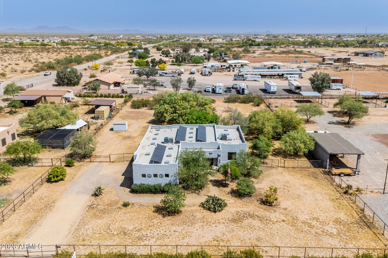 Listing details for 29709 213th Dr, Wittmann, AZ 85361 : Experience the perfect blend of freedom & efficiency in this spacious 4-bed, 2.5-bathroom single-family home. Home is situated on an entirely fenced 1.2-acre lot w/NO HOA, and property offers the Arizona lifestyle you've been dreaming of, complete w/horse privileges and an oversized 3-car garage for all your toys. Discover a split floor plan anchored by a massive great room--ideal for entertaining. Large kitchen featuring a large island, ample storage, rev. osmosis, and a breakfast room. Spacious owner's retreat offers large WI closet, dual sinks & private soaking tub. Neutral paint colors & ceiling fans throughout. Home offers Owned Solar Panels to reduce your electric bills. Newer HVAC and water heater. RV Gate. All Appliances Convey. Mature citrus trees. Move-in ready from day one