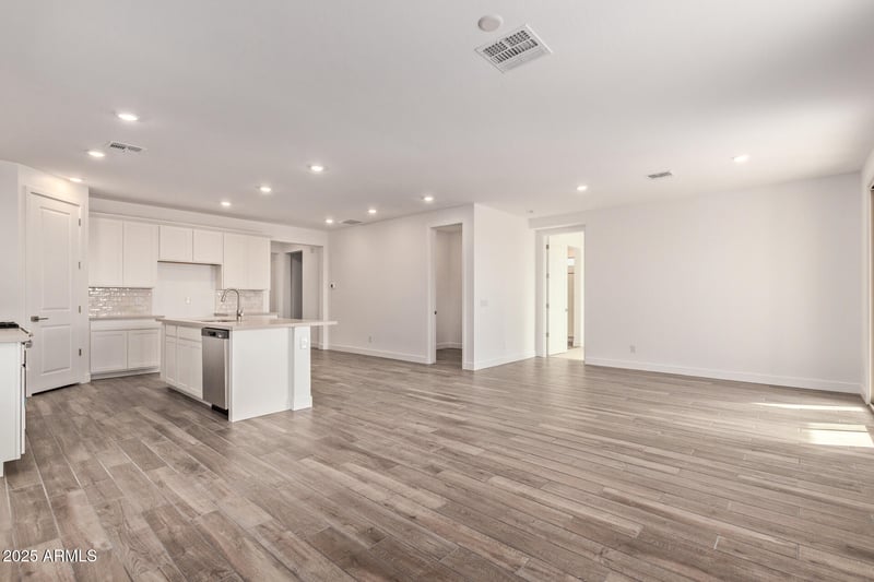 Listing details for 2973 Mecklenburg Way, San Tan Valley, AZ 85143 : This beautifully upgraded home includes 8' interior doors, 9' ceilings, a split floor plan, guest half bath, and pocket office; a versatile space for remote work, home planning, homework, or play. The entertainer's kitchen shines with a large island, single bowl sink, walk-in pantry, quartz countertops, upgraded 42'' white shaker cabinets, brushed nickel finishes, and a GE gas range. With four bedrooms, including a primary suite with dual sink, separate walk-in shower, and large walk-in closet, there's plenty of room for everyone. Other highlights include an 8' garage door, soft water pre-plumb loop, and a north/south-facing lot with an upgraded extended covered patio! This home promises comfort and adaptability for all home shoppers.