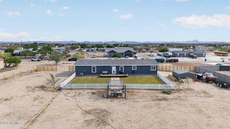 Listing details for 29938 Latham St, Buckeye, AZ 85396 : FHA-approved STEM wall! HOME IS ON CITY WATER! Fully fenced-in yard on just over an acre backyard is ready to entertain with new grass, RC gate, and gazebo. Modern 5-bed, 3-bath home built in 2022, just 20 minutes from Phoenix--sleek, contemporary design with high-end finishes, open-concept living, and abundant natural light. Gourmet kitchen flows into spacious living and dining areas, perfect for entertaining. Enjoy relaxing on expansive front and back decks, ideal for Arizona sunsets or gatherings. The large lot offers space for outdoor activities or future enhancements. This serene retreat combines modern elegance with tranquility, providing a peaceful escape while keeping you close to Phoenix's urban amenities. Don't miss this stunning home!
