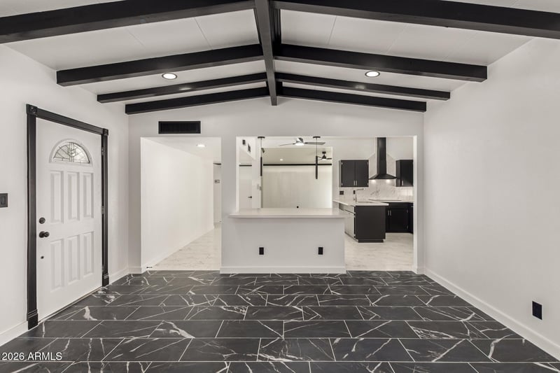Listing details for 3001 Ocotillo Rd, Phoenix, AZ 85017 : Move-in ready home on a desirable pie-shaped lot! The front yard is framed by mature palm trees & complemented by 2 carport spaces + extended driveway. A split layout creates ideal separation of spaces, highlighted by beamed vaulted ceilings, elegant tile flooring, & neutral paint throughout. The spacious living room & bright family room provide comfortable areas to gather. Modern kitchen is a true centerpiece, featuring gorgeous cabinetry, quartz counters, an electric cooktop w/range hood, & a breakfast bar peninsula. The main bedroom offers added privacy with its own entry/exit, a closet, & a bathroom w/dual sinks, a bidet, & a tiled shower. Enjoy a covered patio, a fenced pool, a storage shed, plenty of open play space, & beautiful mountain views in the backyard. Must see!