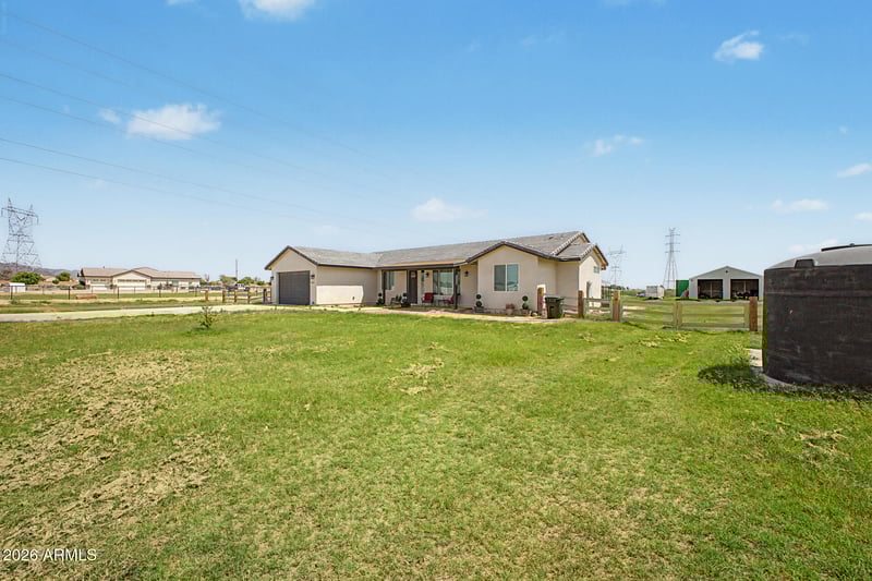 Listing details for 3007 222nd Ave, Buckeye, AZ 85326 : Enjoy the comfort of country living just minutes from town. Situated on a 1-acre irrigated lot, this home features an inviting great room with vaulted ceilings, wood-look tile, and plenty of natural light. The kitchen is appointed with 42'' shaker cabinetry and quartz counters. The primary suite includes a walk-in closet, free-standing soaking tub, dual-head shower, and double vanities. PROPERTY INCLUDES A PRIVATE WELL