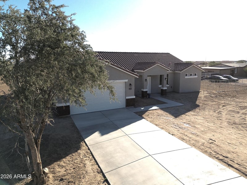 Listing details for 30109 Roosevelt St, Buckeye, AZ 85396 : Everything brand new on this Acreage property! Be the first one to use the new appliances. Be the first one to enjoy these beautiful bathrooms! Open floor plan with finished white cabinets throughout. New Kitchen stainless steel appliances. Large pantry! Shiny tile throughout except freshly carpeted bedrooms. Amazing Back Covered patio from side to side. Ceiling fans in every room. 2 car garage and plenty of concrete for extra parking. RV? Yes, we have space! Bring your horses too. Too much to list. You must see it!