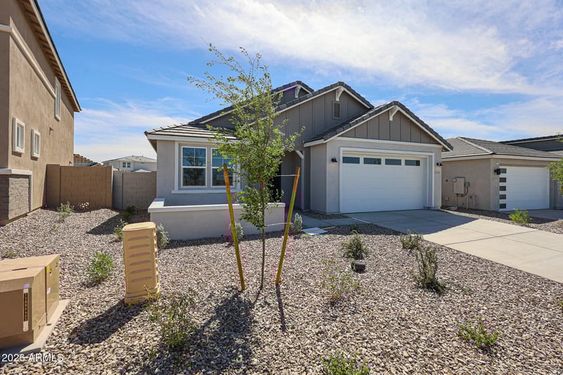 Listing details for 30183 Aster Dr, Buckeye, AZ 85396 : Welcome to your dream home in Willow at Teravalis. The Champlain welcomes you with a light-filled foyer and a French door study—perfect for a home office or creative space. Just beyond, the kitchen shines with a corner walk-in pantry and a spacious island overlooking the dining area and great room, all flowing naturally to the backyard and covered patio for indoor-outdoor living.