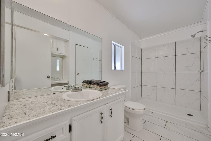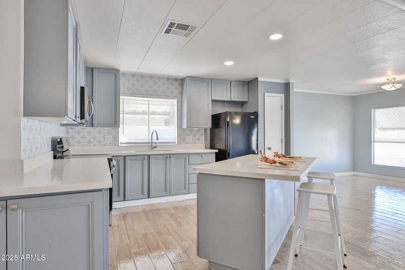Listing details for 303 South Mountain Ave #OFC, Phoenix, AZ 85042 : Family Friendly community! Double-wide Manufactured home. Freshly painted outside 2025. Ceiling fans with light installed 2023 in every room. Tyle floor though out the manufactured home installed 2022. Kitchen remodel 2022 with counter quartz, built in microwave, bathrooms remodel 2023, New blinds in windows, Arizona room tile and remodel 2021. Space to convert a 3rd bedroom. Space to park a 3rd car. This community is close to gyms, restaurants, shopping, and schools. It also offers a Large Rec Center with a community pool. It's a must-see!