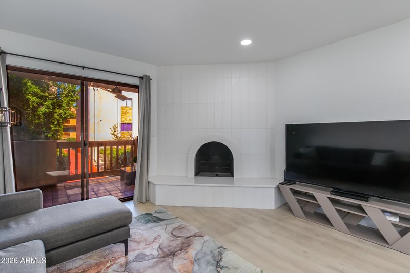 Listing details for 3031 Civic Center Pz #218, Scottsdale, AZ 85251 : End unit positioned on the outer edge of the community, offering a rare combination of privacy, natural light, and convenient access in and out of Center Court. Set away from the courts, pools, and main activity areas, the location feels quieter and more tucked away while still easily accessible from the entrance, creating a strong value position within the community. Updated with a clean, modern finish palette, the interior is bright, cohesive, and move in ready. The open living area and primary suite both connect to the private balcony, creating a natural indoor outdoor flow that extends the living space. Split bedroom layout with no interior steps for easy, low maintenance living. End unit with courtyard exposure, positioned on the outer edge of the community for a quieter setting and easier access compared to interior units. Location avoids direct proximity to courts and pool areas while still allowing convenient entry and exit from the community. Second floor placement provides added separation from walkways and common areas, which has been a key preference for buyers seeking more privacy within the community. Balcony is accessible from both the living room and primary suite, creating a connected indoor outdoor layout that enhances functionality beyond typical units of this floorplan. Updated in 2022 with refreshed kitchen and baths. Clean, cohesive finishes throughout support a low maintenance lifestyle.