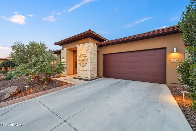 Listing details for 30356 130th Glen, Peoria, AZ 85383 : Located in the prestigious gated community of Trilogy at Vistancia, this stunning 2,329 SF ''Chroma'' model offers 3 Bedrooms + Den, 3 Bathrooms, a NEW 10.30 KW owned solar system & 13.5 KW battery backup, dramatic 10-foot ceilings, TINTED WINDOWS, extended-width epoxy garage, in very close proximity to the Mita Club. Situated on a private North-South exposure lot with no neighbors directly behind and a beautiful palm-lined street setting, this home showcases exceptional upgrades throughout. Interior features include wood-look tile flooring, soaring 10-foot ceilings, dramatic wood beam accents in the Great Room, plantation shutters, and premium Hunter Douglas window treatments. The gourmet kitchen is designed for entertaining with granite slab countertops, maple cabinetry w soft-close stainless steel appliances, including gas cooktop, wall oven, refrigerator, and a premium GE Monogram hood over the oversized island. The spacious primary suite offers private patio access, an oversized walk-in closet, and a spa-inspired bath featuring a new barn door entry for added style and privacy. The second bedroom includes an ensuite bath, while the third bedroom is adjacent to a full guest bathroom. The versatile den provides flexible space for an office, media room, or hobby area. Laundry room includes washer, dryer, full-size sink, and ample cabinetry. Step outside to a NEW backyard oasis featuring a heated and chilled saltwater pool with spillover spa, extensive travertine decking, fire bowls, electronic sunshades and built-in BBQ island -- perfect for year-round Arizona living and entertaining. Additional highlights include a 2024 two-stage HVAC system by Trane with manufacturer and labor warranties and ceiling fans throughout including a 65" farmhouse-style fan in the Great Room and additional patio fans. Luxury, privacy, energy efficiency, and resort living -- all in one exceptional home.