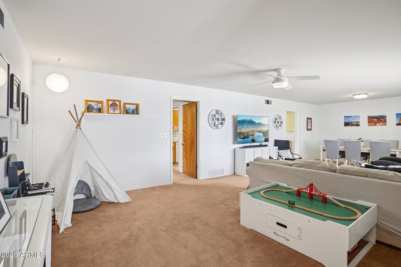 Listing details for 304 Concorda Dr, Tempe, AZ 85282 : Located in the vibrant and green Broadmor neighborhood, a mile south of ASU. Broadmor Elementary and McKemy Academy are just around the corner, with other school options close by. Free shuttle to campus, downtown Tempe, and Light Rail (which connects to the airport, and Phoenix). Multiple grocery stores, restaurants, library, parks within a mile. Centrally located and close by freeways providing easy access to the valley. This Mid-Century Modern ranch home built in 1961, has only had two owners. Newer HVAC, windows, patio doors. Primary en-suite with a walk-in & cedar-lined closet, 2.5 baths, office/study w/ fireplace, laundry rm, and 2-car garage with extra storage room. Large private backyard includes a huge covered patio, mature grapefruit and lemon trees, and raised garden beds