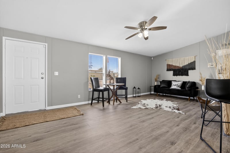Listing details for 30520 226th Ave, Wittmann, AZ 85361 : **Welcome to this beautifully renovated, move-in-ready mfg home set on a premium corner lot just over 1 acre with horse privileges & no HOA. Vaulted ceilings enhance the bright, open split floor plan featuring 3 beds, 2 baths, & just under 1,568 sq ft of thoughtfully updated living space. The home shines with stunning renovations inside & out, including fresh int/ext paint, new flooring, beautifully updated kitchen & baths, plus a newer roof & A/C installed in 2021. Owned solar adds efficiency & long-term value. Outside, enjoy a true lifestyle property with a corral and a stall, 3 wood sheds, and plenty of space for horses, RVs, trailers & toys. Relax on the large covered deck & enjoy peaceful country living while remaining close to the city amenities, shopping & dining. A MUST SEE!!