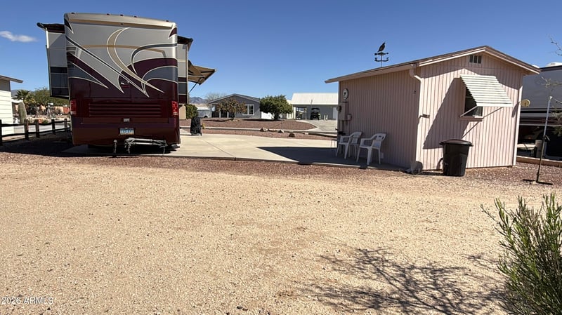 Listing details for 30558 Fort Apache Dr #435, Congress, AZ 85332 : Location, Location, Location with this UPGRADED lot boasting oversized concrete pad and patio with beautiful desert Views. Huge common area at rear of lot affords much privacy, and desert views. Quiet street and very short walk to Saguaro Park. View the sunrises and the sunsets from your perfect RV home base. North Ranch has a clubhouse teaming with activities. Back has gate which opens to miles of adventure hiking and atv trails. Shed for Storage, has bench and washer/dryer.