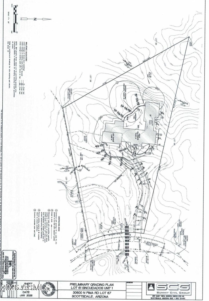 Listing details for 30600 Pima Rd #67, Scottsdale, AZ 85266 : Quick start home building. Owners have have hired a well known engineer to help you visualize where to build. The site location of building envelope, grading, drainage set backs, driveway location and a whole lot more. just click on document tab to see detailed description. This report will help you see where your home will be situated on the lot. what a great lot this is to build there dream home on a quite interior lot that has sunset and mountain views. All utilities at street ready for hook up on this highly desirable nearly 1.8 Ac lot. Buyer must verify building envelop size of 17200 again buyer to verify. HOA does not have a transfer fee but does have Doc disclosure fee of $400 for additional detailed information on building that perfect home.