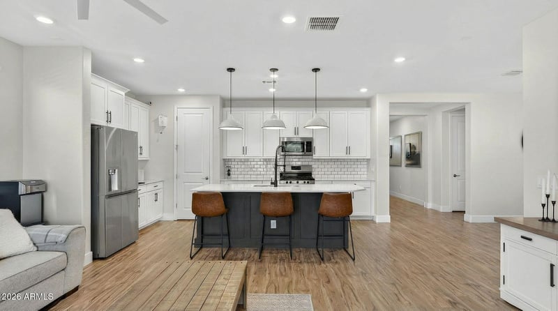 The kitchen is the centerpiece of the home, featuring a dining nook, the highest upgraded kitchen package, and seamless flow into the great room. You'll notice tall ceilings, abundant natural light, updated lighting, and thoughtf upgraded finishes that make the home feel fresh, clean, and truly move in ready.