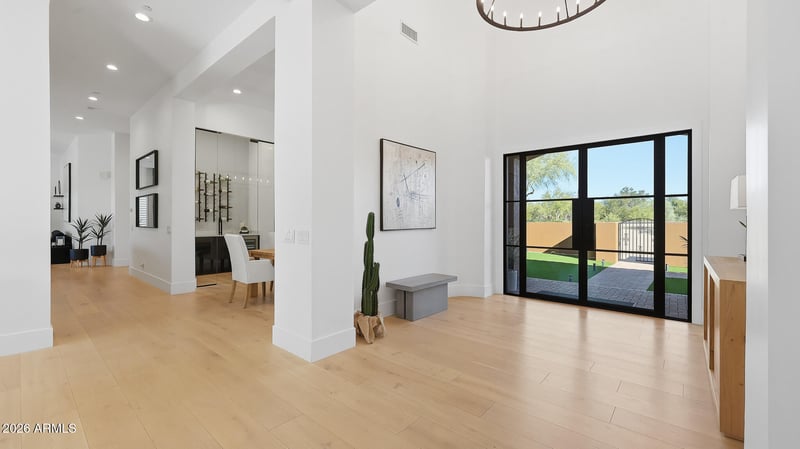 Listing details for 30810 52nd Pl, Cave Creek, AZ 85331 : Situated in a peaceful gated enclave of nine luxury homes, this sprawling single-story residence sits on an expansive acre-plus lot, offering privacy and a refined modern aesthetic. Upon entering through the gated courtyard, you are greeted by the breathtaking foyer and living room that showcase this exquisite home that was completely transformed in 2021. A wide-open layout and desirable split floor plan are complemented by soaring ceilings, creating a bright contemporary environment ideal for both everyday living and entertaining. The home features four bedrooms, three and a half baths, a dedicated office, and an open game room providing flexibility for work, guests, and recreation. The sleek design of the home is accentuated with wide-plank white oak flooring, plantation shutters, modern fixtures and finishes, and thoughtful design details throughout.