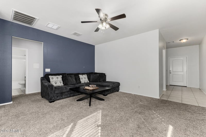 Listing details for 30945 Picadilly Rd, Buckeye, AZ 85396 : Resort style right in your backyard!! Discover a desirable open floor plan bathed in natural light, boasting a blend of tile & carpet flooring, neutral palette, and ceiling fans throughout. The kitchen is a cook's delight, fully equipped with stainless steel appliances, a pantry, tile backsplash, granite counters, and a center island with breakfast bar seating, perfect for meal preparation and casual dining. The primary bedroom provides a private retreat with a stylish barn door entrance to the ensuite, featuring dual sinks and a walk-in closet. Large backyard extends your living space with a covered patio and a refreshing pool, ideal for relaxation and outdoor entertaining. Don't miss out. A deal like this won't last!