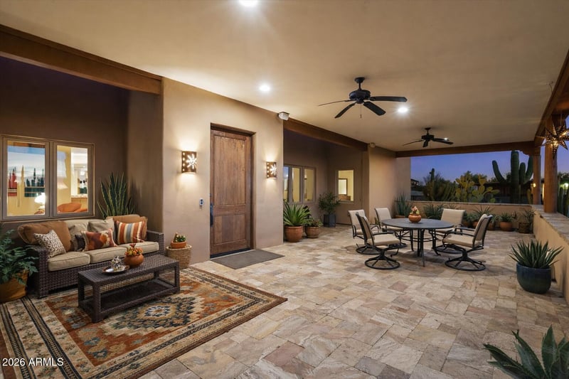 Listing details for 31221 61st St, Cave Creek, AZ 85331 : What truly sets this property apart is the combination of usable acreage, owned solar, and no HOA--allowing flexibility for RVs, toys, additional structures, or simply space to live without restriction. Opportunities offering this level of land, efficiency, and freedom at this price point are extremely limited in Cave Creek.Tucked into the natural beauty of Cave Creek, this thoughtfully designed 3,300 SF single-level custom home sits on over an acre with owned 11.45 kW solar and no HOA--offering a rare combination of privacy, efficiency, and freedom that's increasingly hard to find. The open, single-level floor plan is built for both comfort and functionality, featuring wide-open living spaces and seamless indoor-outdoor flow. Pella casement windows throughout bring in natural light. Step outside to expansive covered front and back patios finished in travertine, complete with an outdoor kitchen, LP gas fire pit, and a private pool--creating a true Arizona retreat ideal for entertaining or everyday living. A dedicated greenhouse adds a unique opportunity for gardening or sustainable living.