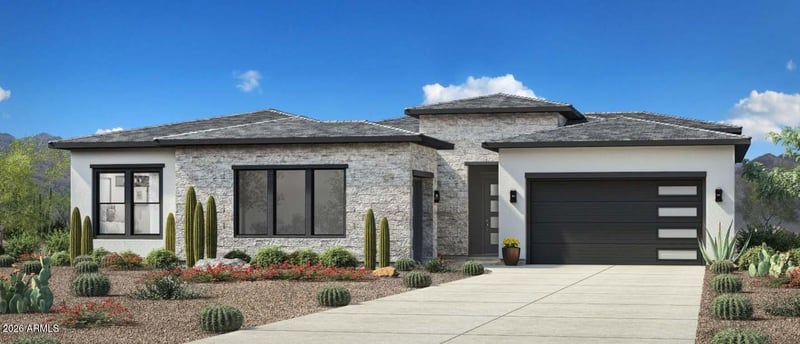 Listing details for 31297 Crown King Ln, Queen Creek, AZ 85144 : New home scheduled for completion in late 2026, so there is time to add personal touches! The Orangevale Desert Contemporary plan, located in a gated community, blends classic design elements with a modern twist. Exceptional curb appeal draws you in from the moment you arrive. The inviting entry flows effortlessly into the kitchen and great room, creating a warm and welcoming atmosphere. This home provides the perfect backdrop for entertaining. From the expansive kitchen island to the great room, you'll have plenty of space to host family and friends. The spacious primary bedroom includes a luxurious bathroom with a separate soaking tub and shower, as well as a generous walk-in closet. The three additional bedrooms also feature walk-in closets. Don't wait—this caliber of home won't last